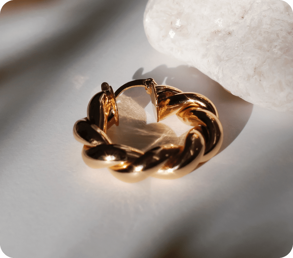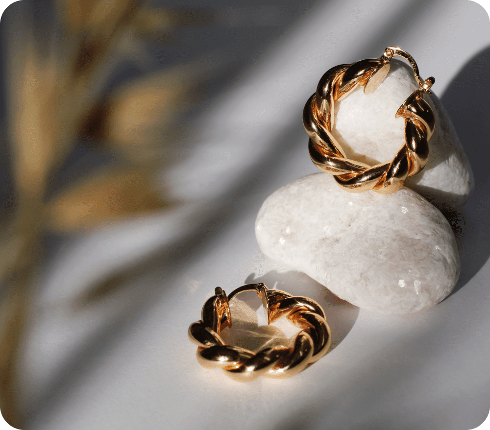 Les boucles d’oreilles « Céline » incarnent un équilibre parfait entre la délicatesse et l’audace. Confectionnées avec soin, elles mettent en valeur une symphonie de courbes raffinées et de motifs subtils.